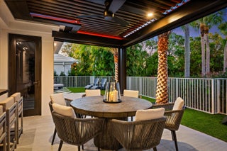 Fully renovated and thoughtfully re-designed, this exceptional cottage offers a rare blend of sophisticated design and effortless indoor-outdoor living. High-end finishes, sleek clean lines, and a bright open floor plan create a modern yet inviting atmosphere throughout the home. Expansive impact glass windows and doors fill the interiors with natural light while seamlessly connecting the living spaces to the outdoors. The redesigned layout maximizes flow and functionality—creating a one-of-a-kind cottage floor plan unlike any other in the community. Step outside to a backyard that rivals homes twice its size. Designed for both relaxation and entertaining, the outdoor space features multiple lounge areas, an impressive summer kitchen, and thoughtfully designed entertainment spaces. A striking louvered aluminum pergola provides adjustable shade and architectural style, creating the perfect setting for gatherings day or night. Ideally located just moments from the Club, Tennis, Spa, and Marina, this truly special residence offers the perfect combination of luxury, comfort, and convenience in a beautifully reimagined cottage setting.