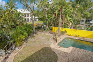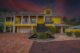 This timeless three-story waterfront home features strong poured concrete construction with five beds and four baths, designed in British-French Colonial style on a spacious 15,000 sf lot. Located in a desirable Non-HOA unincorporated Martin County cul-de-sac, it boasts luxurious interiors with pecky wood ceilings and Brazilian teak balconies overlooking a tropical canal and private dock. The property offers 100 feet of navigable waterfront and one of the largest private docks in the area, providing direct ocean access for vessels up to 35 feet without bridge obstructions. Additional features include a rooftop sun deck, in-ground pool, summer kitchen, Generac generator, newer metal roof, and solar panels, offering a unique chance for buyers to customize their private waterfront residence