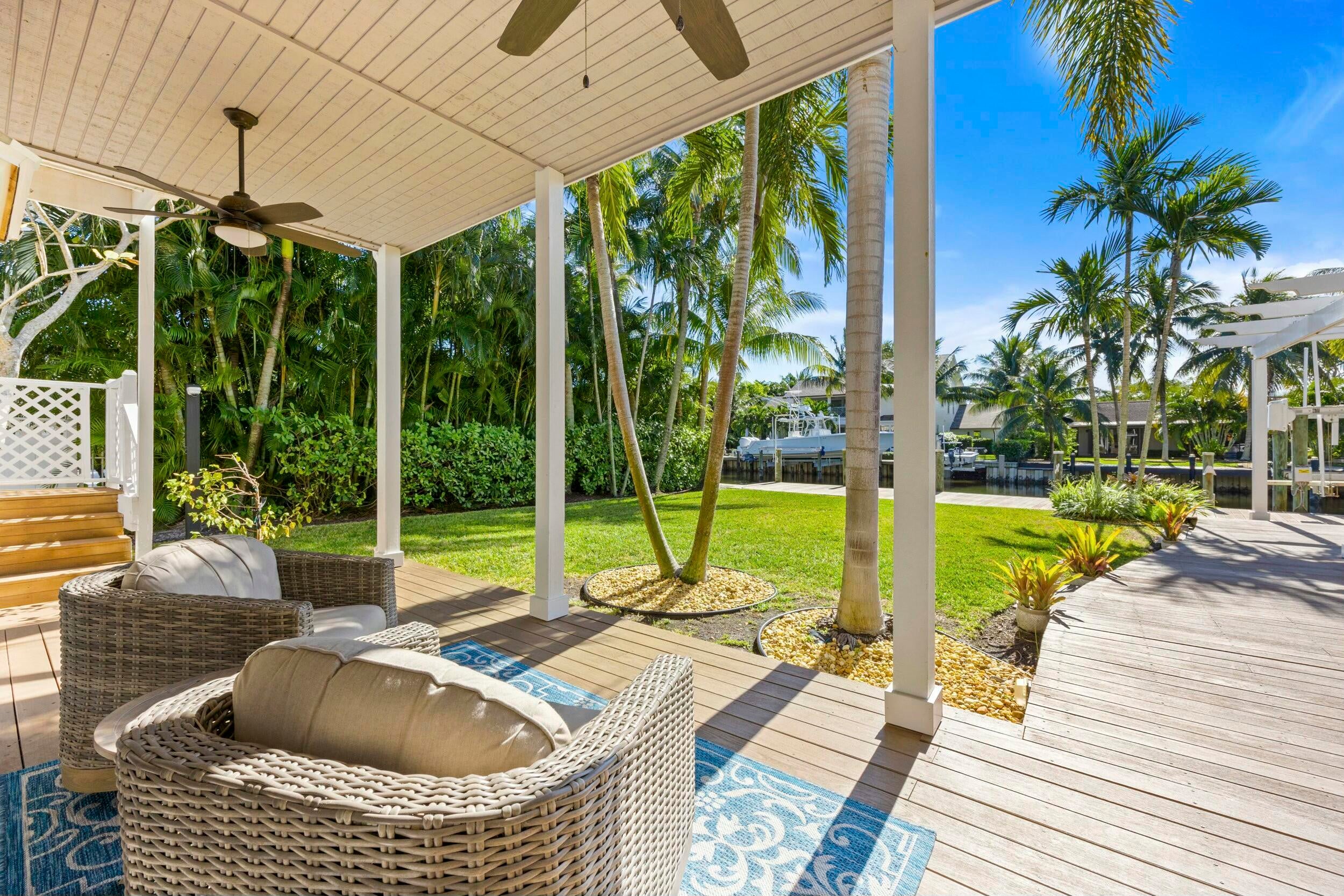 Stunning Key West-Style Waterfront Home in Jupiter, FL - A Boater's Dream! This beautifully remodeled 5-bedroom, 3 1/2-bath waterfront home, located in the heart of Jupiter, Florida, offers the ultimate in coastal living. Set on 78 feet of prime waterfront property on , a deep water canal the home features a dock with electric and water, plus a 13,500 lb boat lift - perfect for boating enthusiasts. With no fixed bridges, you'll have quick and easy access to the Intracoastal Waterway and just minutes from the Jupiter Inlet to the Atlantic Ocean. Original house was gutted to exterior walls and rebuilt with a second story in 1995 under Dade County Codes, then completely remodeled/updated in 2022 inside. The home blends modern luxury with classic Key West charm. Inside, you'll findwide-plank wood flooring adding a warm and inviting feel to every room. The heart of the home is its stunning gourmet kitchen which boasts Signature Kitchen Suite appliances, including refrigerator and freezer columns, dual-fuel pro gas range with griddle, along with custom cabinetry and quartz waterfall countertops that make a bold statement. A bar prep sink adds convenience, making the space perfect for both everyday living and entertaining. In addition to the chef's kitchen, there's a separate bar area featuring a beverage refrigerator and wine cooler, offering the perfect spot for mixing cocktails or storing your favorite wines. The home is equipped with impact glass and a metal roof. Other upgrades include two new A/C units (one installed in 2022, the other in 2023), a tankless on demand gas hot water heater (installed in 2023), and a 250-gallon propane tank for added efficiency. For added comfort and convenience, the home also features motorized window blinds, which allow for effortless control of light and privacy at the touch of a button. With 5 spacious bedrooms, 3 1/2 baths, and a layout designed for easy flow between indoor and outdoor spaces, this home is perfect for both relaxing and entertaining. The dock, which stretches along almost the entirety of the back of the property, offers ample space for docking or simply enjoying the waterfront. The home also features a home security system for added safety. Furniture is negotiable. This exceptional waterfront property is located in one of Florida's most desirable communities.