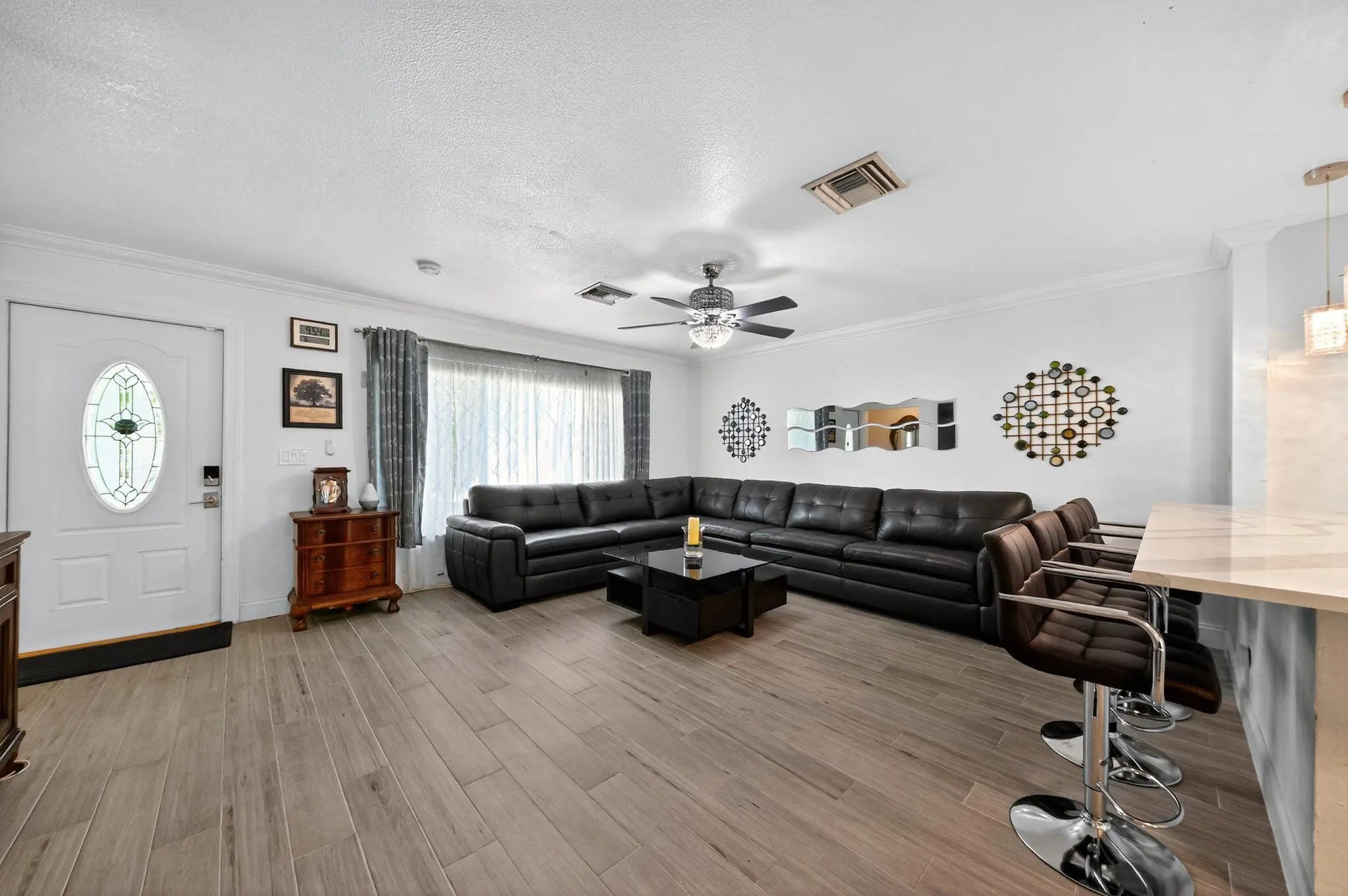 Welcome to this beautifully renovated and fully furnished 3-bedroom, 2-bathroom home for lease, nestled on a quiet cul-de-sac in Jupiter. Recently updated with a brand-new roof and fresh exterior paint (2024), this residence is move-in ready and designed for comfort and style. Inside, you'll find a bright and welcoming layout with hurricane-impact windows, elegant finishes, and thoughtful upgrades. The master bathroom features a travertine shower, while the second bathroom is accented with slate tile. A lovely Florida room provides the perfect spot to relax or entertain year-round. Outdoors, the lush backyard is a private retreat with a sparkling pool and ample space for entertaining under the Florida sun. The extended driveway offers plenty of parking, and