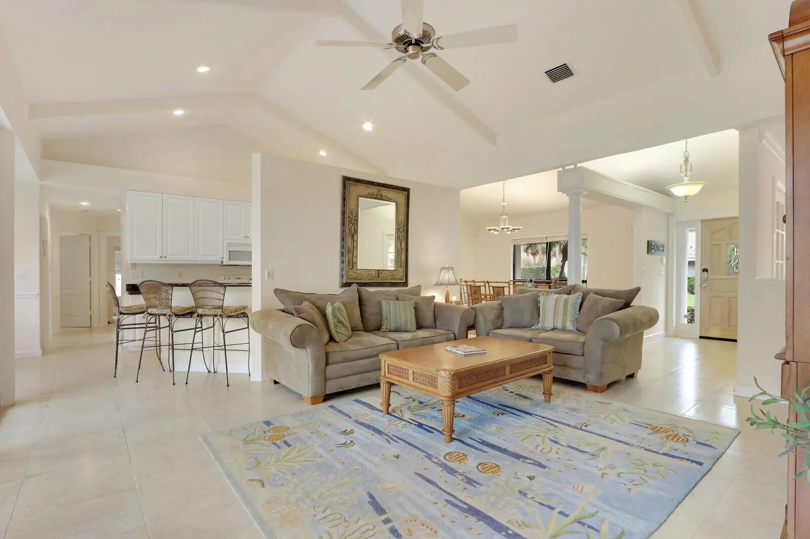 **Update: All carpet has been removed, and replaced with modern vinyl flooring. All kitchen appliances have been replaced with brand new stainless steel appliances. Can be rented unfurnished, furnished, or partially furnished.This charming three-bedroom, two-bathroom house in one of Jupiter's most tropical neighborhoods offers the perfect blend of comfort and coastal living. Just a short walk to the beach, you'll enjoy easy access to sun and surf whenever the mood strikes. The home features soaring high ceilings that create an airy, light-filled atmosphere throughout. The spacious covered lanai provides an ideal spot for morning coffee or evening relaxation, while the fenced backyard with lush grass offers privacy and space for outdoor activities.