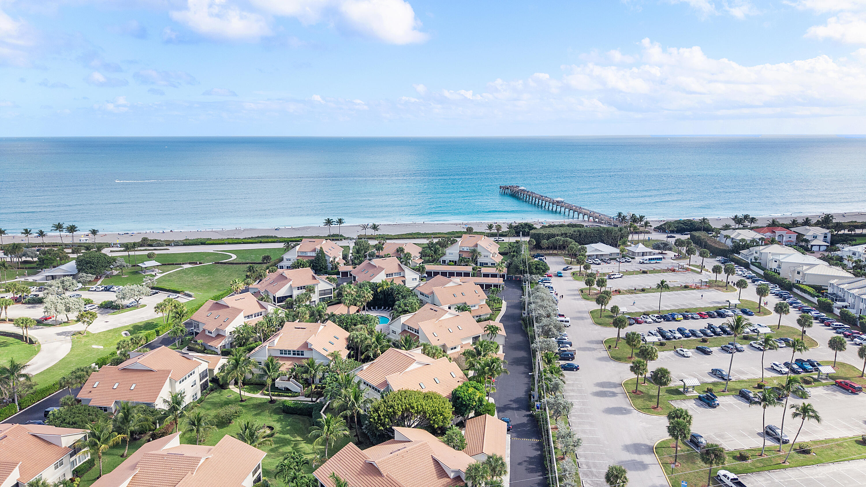 Corner unit walk-up to the LARGEST 2-bedroom floor plan, just steps from the beach in a gated community. The bright interior features recessed lighting, crown molding, polished tile floors, and an oversized primary suite, plus the flexibility to create a 3rd bedroom, office, or den. Enjoy in-unit laundry, a private storage unit, a separate one-car garage, and a screened patio with a pine wood ceiling where you can relax and feel the ocean breeze. The community offers a private beach pathway to the Juno Pier and is walking distance to shopping, restaurants, Ocean Cay Park, dog-friendly beaches, and playgrounds. NEW roof, NEW AC, NEW appliances, hurricane film windows, NO assessments, fully funded reserves, and the HOA includes water, cable, trash, and exterior maintenance.