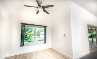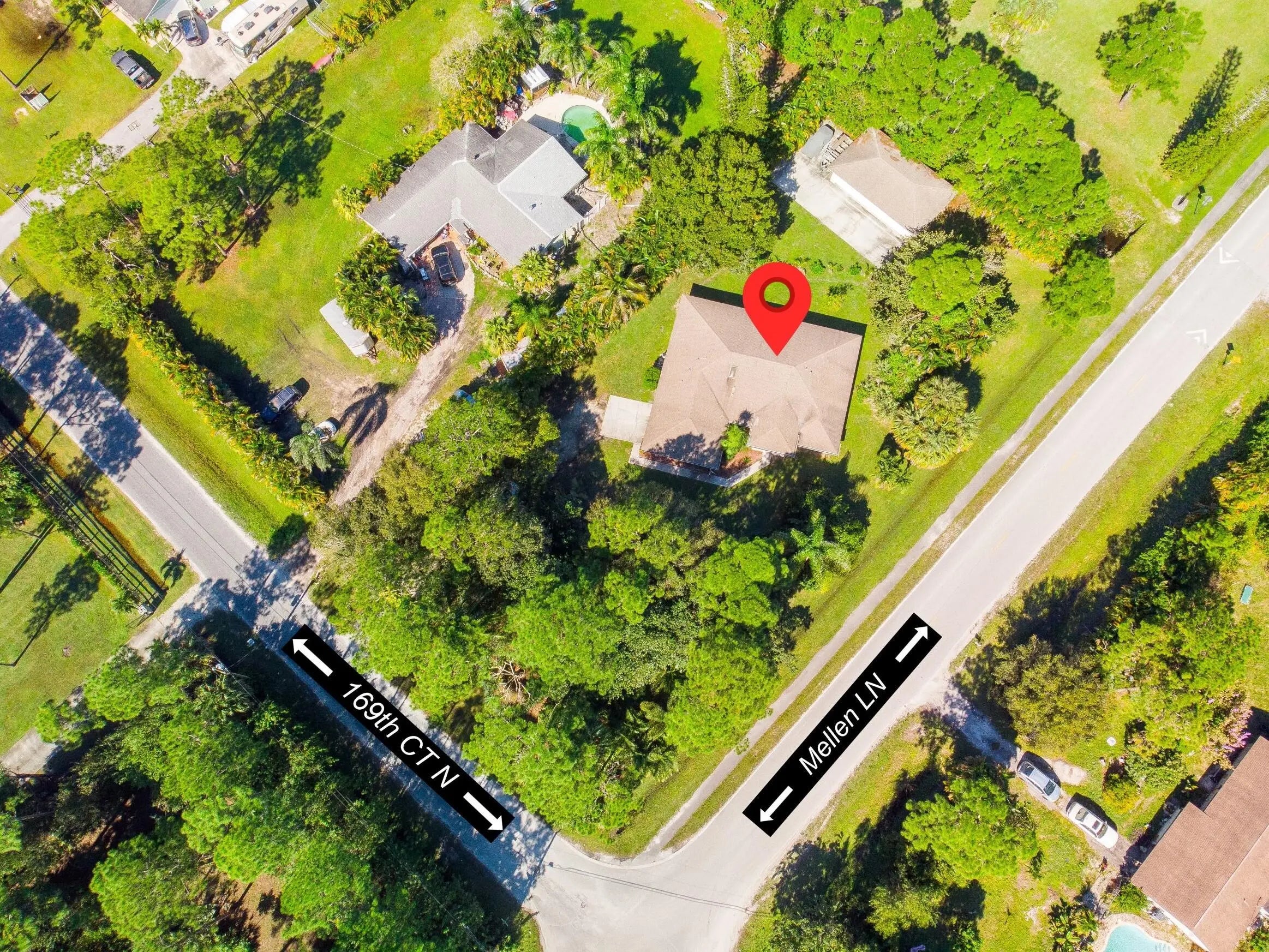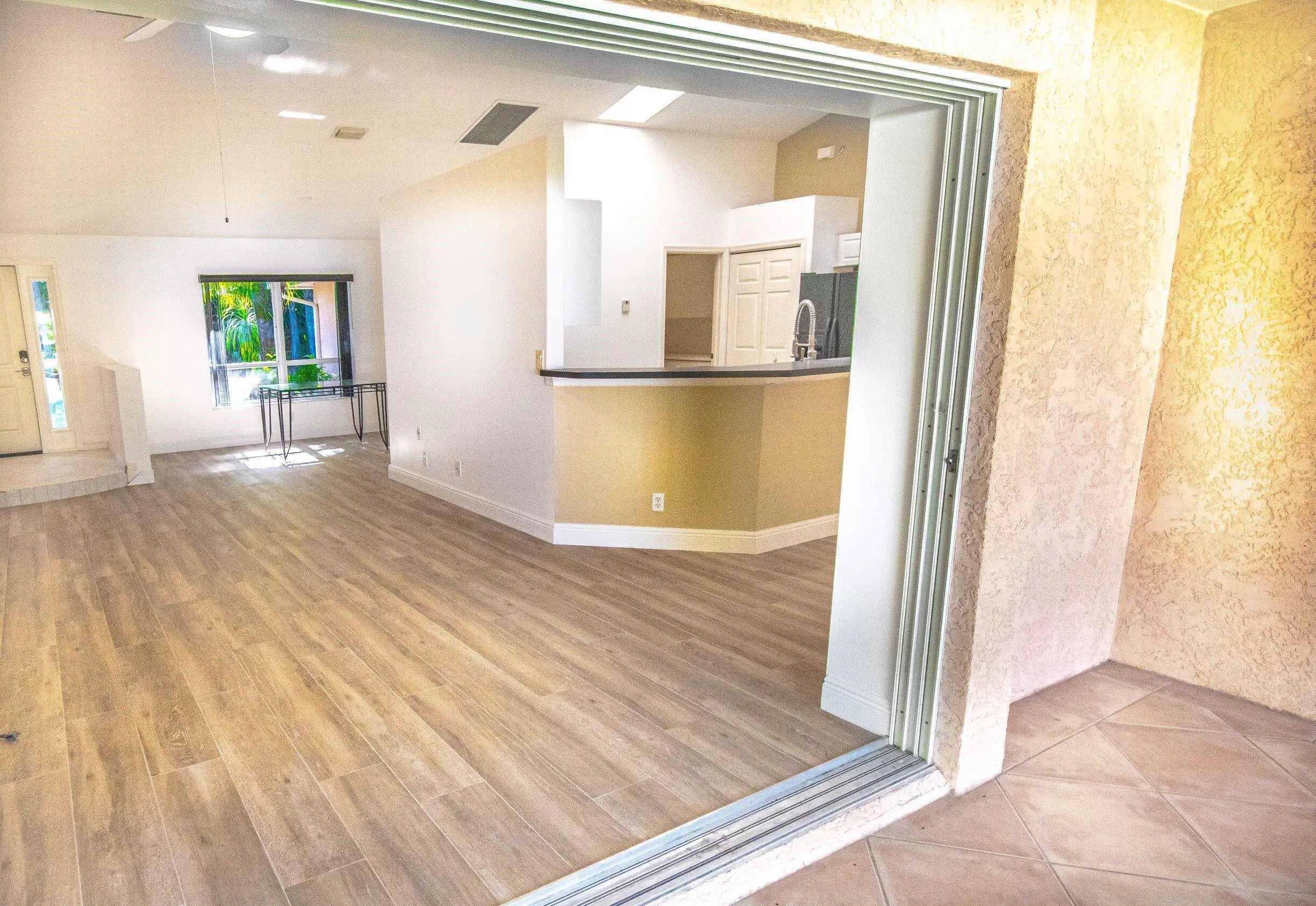 Welcome home to a private oasis located in Jupiter Farms. Single story CBS home with 2 car attached Garage located on paved road. The home has been freshly painted with all New Oak Ceramic Planking and base boarding. Open floor plan with renovated kitchen and baths. Quiet corner property with Large Screened Patio. The kitchen features a center island and white raised cabinetry. Master suite features his and her walk-in closets. The Primary bath has been totally remodeled er, water closet and dual sinks. Second bathroom could serve as a cabana bath. Inside laundry room has built in cabinetry and folding station. Living area has a pocket sliding glass door that leads to a huge 12 x 34 screened in patio.