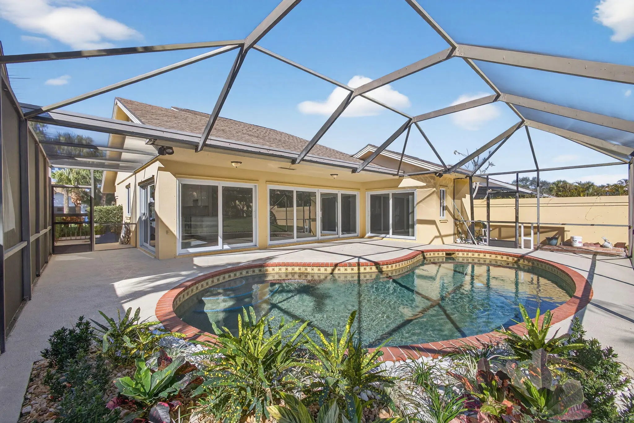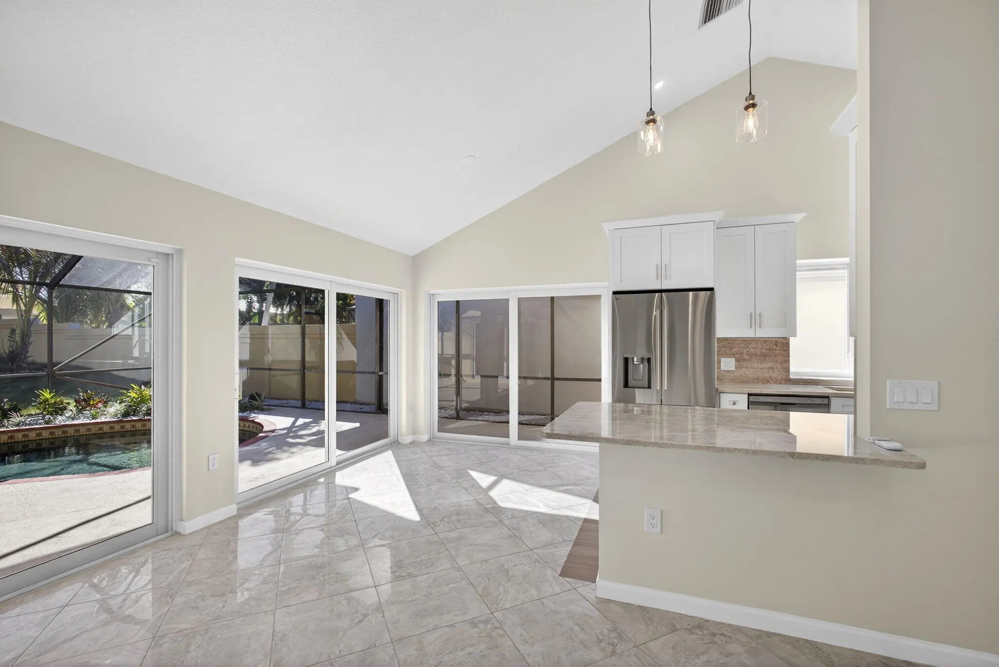 3/2/2 Bluffs Pool Home Renovated with Oversized Screen Enclosure on Large, Private Tropically Landscaped Yard. The Extended Den/3rd bedroom with Hardwood Floors & Stairs to Loft w/Large Window. Diagonal Tile Throughout Living Area. Kitchen has New SS appliances, Cathedral Ceilings in Living Room. Close to Community Pool, Tennis, Basketball & Easy Walk to Beach, Juno Pier and Park, Shopping & Restaurants. Pool and Lawn Service Included in Rent. NO SMOKERS!