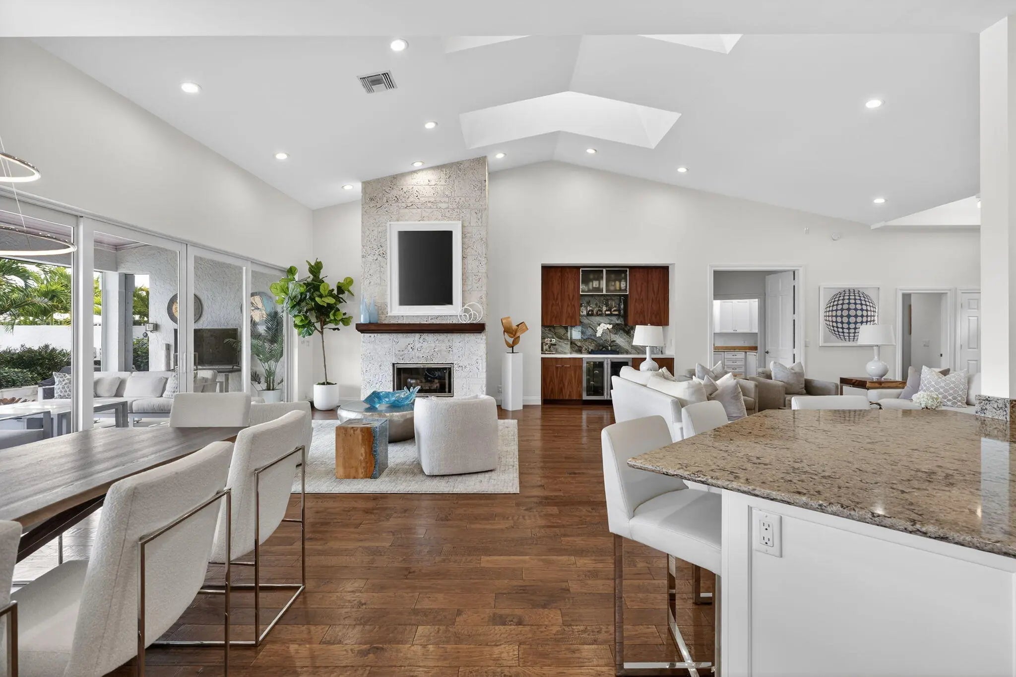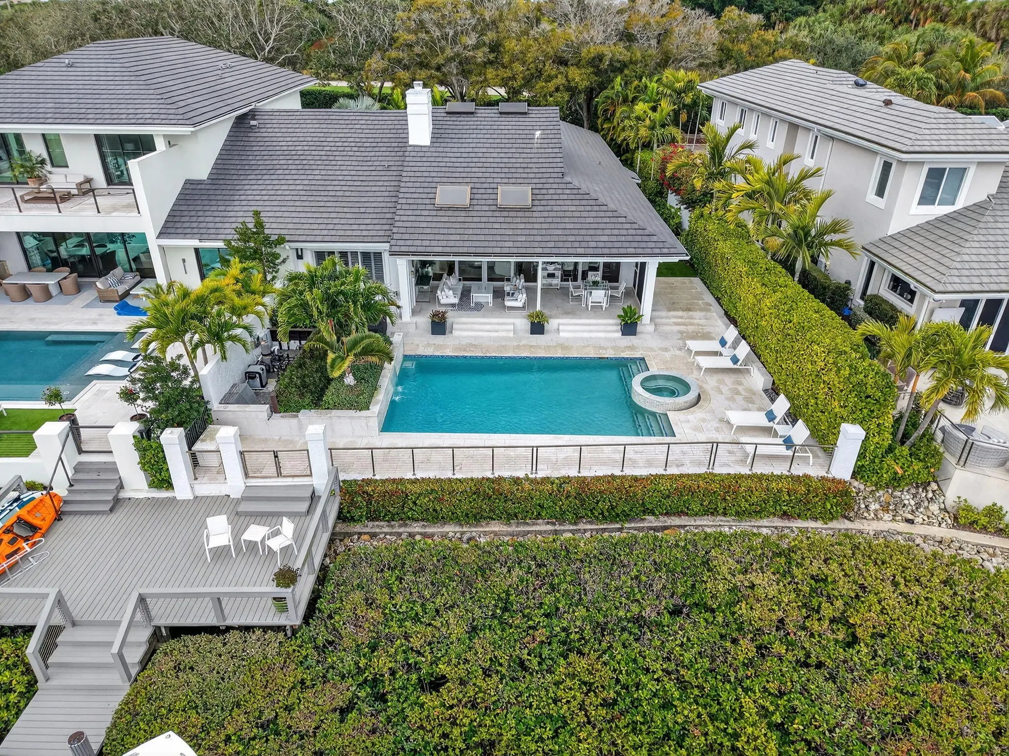 Comprehensively upgraded waterfront 3BR/3BA residence, each bedroom en suite, w/significant capital improvements completed 2022-2025. New roof (2023/2024). Newly constructed dock w/upland seating area, full-service pedestal (water/power/lighting) & 24K lb boat lift. Renovated saltwater pool & spa finished with new patio pavers & cable rail system. Retractable screens create seamless indoor-outdoor living.Complete reimagining of hardscape and landscaping w/new irrigation & architectural lighting. New driveway & statement front entry. Exterior paint '23. Custom interior bar w/built-in cabinetry. HVAC replaced '25 & whole attic dehumidification system installed. Private dockage w/direct access to open water, complemented by 45 holes of championship golf & the full luxury club amenities.